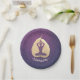 Yoga Fitness Studio / Meditation Instructor / Personal Trainer / Life Coach / Heiler / Reiki Master / Massage Therapie Papier Platte. Moderne Imitate Gold Foil Bodhi Leaf Schneiden als Yogi in Easy Seat Pose / YOGA Easy Pose / Sukhasana Pose auf Deep Lila Grunge Hintergrund.