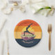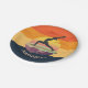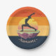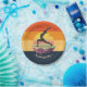 Yoga Fitness Studio / Meditation Instructor / Personal Trainer / Life Coach / Heiler / Reiki Master / Massage Therapie Papier Platte. Elegante Yoga Meditation Pose / Pose des Halbmonds / Pose der Halbmonde / Pose der Halbmonde / Surya Namaskar / Anjaneyasana Pose / Sun Salutation / Krieger 1 Yoga Pose / Yoga Moon Salutation / Chandra Namaskar / Silhouette auf Fantasy Island Floating in Air Sunset.