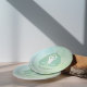 Yoga Studio Meditation Instructor / Life Coach / Heiler / Reiki Master / Massage Therapy Paper Plate. Modernes Grünes Bodhi Leaf und Yogi in leicht sitzender Pose / YOGA Leichte Pose / Sukhasana Pose auf grünem Blumengeflecht Hintergrund. "Wenn du Frieden in dir selbst findest, wirst du die Art von Person, die in Frieden mit anderen leben kann."