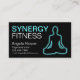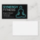 Kontur einer Frau in einer Yoga-Pose in leuchtend blauer Farbe mit solidem schwarzem Hintergrund. Text ist ein moderner, knackiger Schriftart. Große Energie und einzigartige Visitenkarte für Yoga, Pilates, Aerobic Instructors oder Personal Trainers und Fitness Instructors.