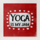 "Yoga Is My Jam" ist ein lustiges Textdesign mit einer weißen Akzent-Form, umgeben von weißen, weißlichen, weißlichen, weißlichen, weißgetönten Punkten.
