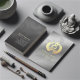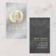 Yoga Studio Meditation Instructor / Life Coach / Healer / Reiki Master / Massage Therapy 5 Class Pass Loyalty Card Template - Elegante Calligraphy Imitate Gold Foil Yoga Meditation Leichte Pose / Sukhasana Pose mit ZEN Symbol auf OM Symbol Silver Floral Damask Papier Hintergrund.