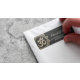 Elegante YOGA Meditation Instructor Address Label Template - Chic Black and Gold Embossed Mandala Floral und OM Symbol auf schwarzem Papier Hintergrund.