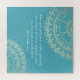 Moderne schicke Imitate Gold Foil Blütenmandala Symbole auf Crystal Blue / Aquamarin Grün Blau Hintergrund.