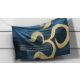 Yoga Fitness Studio / Meditation Instructor / Personal Trainer / Life Coach / Heiler / Reiki Master / Massage Therapy Quotes Banner Template - Modern Imitats Gold Foil Om Symbol auf Dunkelblaues Wellenmuster Hintergrund.