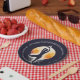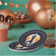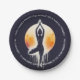 Modernes Yoga Fitness Studio / Meditation Instructor / Personal Trainer / Life Coach / Heiler / Reiki Master / Massage Therapy Paper Plate. Moderne Yoga Meditation Pose / Pose Bäume (Vrksansana) mit Vollmond auf dunkelblauem Farbhintergrund.