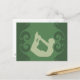 Eine Yoga posierende Frau in Grün macht dies zu einer beruhigenden Karte für Yogalehrer, Pilates-Instruktoren und Studenten von beidem.