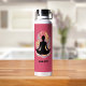 Pink background. A woman doing a yoga pose, Multi colored swirls in the background. Personalize and add your name.