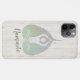Yoga Studio Meditation Instructor / Life Coach / Heiler / Reiki Master / Massage Therapy iPhone Plus Hüllen Vorlagen - Elegante grüne Bodhi Leaf und Yogi in Easy Seat Pose / YOGA Easy Pose / Sukhasana Pose auf weißem Holz Hintergrund.