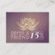 Yoga Studio Méditation Instructeur / Coach Vie / Guérisseur / Reiki Master / Massage Thérapie Référence Carte Rendez-vous Modèles de carte d'affaires - Moderne Elégant Faux Gold Lotus sur Arrière - plan Grunge Violet.