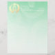 Yoga Studio Meditation Instructor / Life Coach / Healer / Reiki Master / Massage Therapy Letterhead Template - Elegante Kalligraphie Imitate Gold Foil Yoga Meditation Easy Pose / Sukhasana Pose mit ZEN Symbol und OM Symbol auf Green Gold Foil Texture Hintergrund.