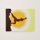 Yoga-Posen von einer jungen Frau im Set der Silhouette gegen einen gelben Sonnenuntergang.