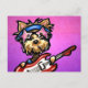 Aus Andies originaler Tinte & farbigen Bleistift-Illustration eines Yorkie in Rose getönte Sternensungbrillen mit roter Gitarre. Ein tolles Geschenk für Yorkshire Terrier Liebhaber.