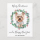 Schick Weihnachten Grüße in dieser Urlaubssaison mit diesem eleganten Weihnachts-Yorkshire-Terrier in einem Kranz-Design-Karte und passender Dekoration. Diese Gästekarte verfügt über einen Aquarellhund in einem grünen und roten Kranz mit Heiligen und Beeren. Personalisieren mit Familiennamen . Die Yorkshire Terrier Weihnachtskarte wird bei Liebhabern von Yorkie, Hundeliebhabern und Tierfreunden beliebt sein. Besuchen Sie unsere Kollektion für passende Weihnachtskarten, Wohngestaltung und Geschenke. COPYRIGHT © 2020 Judy Burrows, Black Dog Art - Alle Rechte vorbehalten. Yorkshire Terrier Dog Elegant Frohe Weihnachtsfeiertage Postkarte