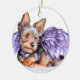Der süße kleine Yorkshire Terrier, der auf einer Wolke ruht, hat lila Feathery Flügel. Yorkie Angel bringt jedem ein Lächeln ins Gesicht, zu jeder Jahreszeit!
