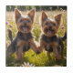 Yorkshire Terriers spielen im Gras Fliese
