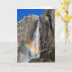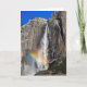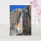 Dieses Foto kennzeichnet Winter bei Yosemite Falls mit Schnee und Regenbogen an einem sonnigen Tag.