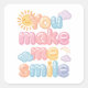 "You Make Me Smile" with Sun and Clouds Quadratischer Aufkleber
