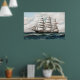 Es handelt sich um eine überarbeitete und verbesserte Reproduktion eines Clipschiffs, das aus einer Kopie des Ölgemäldes von Antonio Jacobsen, einem fruchtbaren nautischen Maler aus dem späten 18. und frühen 19. Jahrhundert, stammt. Wir erweiterten das Bild, redigierten es und verbesserten seine Klarheit durch KI-Tools und Fotoshop, um Details und Dynamik wiederherzustellen. Die Reproduktionskunst respektiert Antonio N. G. Jacobsen, der Porträts der Arbeitsschiffe des New Yorker Hafens mit präzisen Rumpflinien, Rigging, taut Leinwand und lebendigen Meeren gemalt hat. Das Originalgemälde mit dem Titel "Young America At Sea" ist ein echter Beweis für Jacobsens Können als talentierter nautischer Künstler. Das Schiff Young America hatte eine faszinierende Geschichte. Die New Yorker Werft von William H. Webb startete das Schiff 1853. Zu dieser Zeit war Young America einer der besten amerikanischen Extremklippern. Sie segelte während des Goldrausch von New York nach San Francisco und reichte weit nach Liverpool, in die China, nach Australien, auf die Philippinen, nach Mauritius und vieles mehr. Sie machte mehr als zwanzig New York nach San Francisco westlich Passagen.