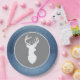 Party-Teller verfügen über eine Silhouette mit weißem Hirsch mit grauem Hintergrund, weißer Kontur und einem Denim-Texturhintergrund. Super Spaß für jeden Buck, Reh, Jäger Thema Geburtstag oder Babydusche.