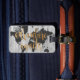 Ein niedliches Design mit einem goldenen Text und einer schwarzen Weltkarte auf grauem Hintergrund. Künstler: Studio W
