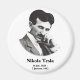 Wissenschaftler und Erfinder Nikola Tesla als junger Mann, in einer schwarzen Abbildung auf einem runden Magneten. Ideal für verrückte Ingenieure, Stromfans und Liebhaber von Steampunk. Aus der Sammlung der Wissenschaftler des Kartesischen Bären.