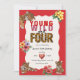Roar into fun with this "Young Wild and Four" birthday invitation! Featuring adorable tigers and vibrant tropical flowers, this design is perfect for a jungle or safari-themed fourth birthday party. The playful "Young Wild and Four" text, set against a bold red background, captures the adventurous spirit of a growing child. The inclusion of a QR code on the back makes RSVPs a breeze for your guests. Celebrate this wild milestone with an invitation as unique and exciting as your little one!