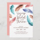 Young Wild & Three Watercolor Boho Feathers Einladung