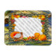 Ein farbenfroher Gestaltungsrahmen, mit Gemüse, Obst, Blume und fallendem Truthahn, alle bereit für dieses besondere Foto, um ein vollkommenes kleines Geschenk zu machen, oder dekorieren Sie Ihre eigene Küche. Gut für den Erntedank!