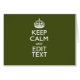 Votre Keep Calm vous dit sur une belle décoration personnalisée couleur vert olive. Un style personnalisé Keep Calm en disant sur un cadeau de nature. Essayez humour ou fantaisie sur vos mots créatifs sur deux lignes de texte modifiables. N'oubliez pas d'utiliser les lettres CAPITAL pour obtenir les meilleurs résultats. Utilisez le lien "Demandez à ce concepteur" pour nous contacter avec vos demandes de design spécial ou pour obtenir de l'aide sur vos besoins de personnalisation.