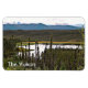 Der Blick auf die Yukon-Taiga. Anpassbare Textauswertung, "Der Yukon" erscheint ebenfalls. Der Taiga, oder borealer Wald, bedeckt weite Teile des hohen Breitengrades nördlich von Nordeuropa durch das europäische Russland und Sibirien, nach Alaska und Kanada, zwischen den Steppen im Süden und der tundra, die weiter im Norden von den Bäumen entfernt ist. Die Taiga zeichnet sich durch den fast endlosen Nadelwald aus, das sumpfige Land mit Seen und Teichen übersät. Schwarze Spruce, Picea mariana, sind sehr verbreitet und nimmt eine Säulenform an, wenn sie in feuchtem Gelände wachsen, wie in dieser Ansicht von Biber Creek, Yukon Territory. Im Sommer können die Moskitos unglaublich zahlreich sein.