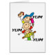 Yum Yum haften Sommerentwurf T - Shirts, Karten, Tassen, Taschentaschen, Aufkleber und anderer Yum Yum die Sommereinzelteile, die einige kennzeichnen, Kinder an einem Hinterhofgrillpicknick! Würstchen, Eiscreme und Maiskörner. Was konnte besser sein?