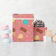 Genießen Sie Ihr nächstes Eis sozial, aber vergessen Sie nicht, ein Geschenk mit diesem Design zu verpacken. Yummy-Eistöcken, Bars und Leckereien mit Popsikeln, Eiscreme und Sprinklen in Schokoladenbraun, Vanillecreme, Pfefferminzgrün und Erdbeerrosa. Dieses Muster befindet sich auf einem dunkelrosa Hintergrund.