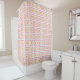 Es wird ein Muster angezeigt, das sich aus wiederholten geometrischen und abstrakten Formen zusammensetzt und Pastellfarben vorwiegend in Rosa, Blau, Gelb und Weiß zeigt. Jede Musterzelle enthält eine zentrale sternähnliche Form, umgeben von verschiedenen Punkten und Strichen, was auf ein Gefühl von Verspieltheit und Symmetrie hindeutet.