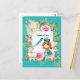 Eine niedliche und bezaubernde Illustration einer Märchenprinzessin, die eine aquamarine Goldkrone und ein hübsches blaues Kleid trägt, strahlt im Großen und Ganzen aus und hält eine Flut, die um einen glänzenden weißen Zahn herum gewickelt ist. Eine lächelnde Zahnbürste fliegt über den Zahn, um sie zu putzen, und eine weitere blonde Haarbärenmärchen erscheint oben links mit einer Imitat Goldmünze mit einem Zahn. Sie sind gerahmt von boho trockenen Blätter und hübsch rosa rosa Blume. Eine Vorlage für Ihre Tochter; Enkelin; Nichte oder Patenkind-Name erscheint auf der Vorderseite und die Rückseite hat Vorlagen für Ihre personalisierte Formulierung. Vergessen Sie nicht, den Link ATTRIBUTION zu entfernen, indem Sie darauf klicken, um das Zazzle-Logo zu entfernen.
