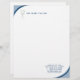 Zahnmedizinischer/Zahnarztbriefkopf mit molarem Zahnlogo und blauem Kurvenakzent. Zusammenpassende Visitenkarte und Aufkleber verfügbar.