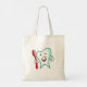 Eine Leinwand Tote-Tasche mit einer Abbildung eines Cartoon Stil großen weißen Zahn lächelt glücklich halten eine rote Zahnbürste und geben den Daumen nach oben Zeichen.