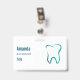 Namensschild mit Abbildung eines Zahnzahs. Gezeichnet mit einer grünen Gradienten-Kontur.