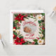 Feiern Sie die Freude der Saison mit dieser wunderschön gestalteten flachen Grußkarte, perfekt, um den neuesten Segen Ihrer Familie zu teilen. Die Vorderseite zeigt einen festlichen Blumenrand aus roten Weihnachtssternen, weißen Blüten, Tannenzweigen und Beeren, der einen weichen cremefarbenen Raum umrahmt, in dem ein Foto Ihres Babys die Karte zum Leben erweckt. Die Worte "Dankbar für unser Geschenk in dieser Saison" erscheinen unter dem Bild und drücken herzliche Dankbarkeit aus.