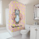 Alter Zauberer mit rosafarbenem Kap und Kristallzauberkugel. Verwenden Sie das Foto für Gesicht zum Anpassen. Eigener Text.