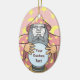 Alter Zauberer mit rosafarbenem Kap und Kristallzauberkugel. Verwenden Sie das Foto für Gesicht zum Anpassen. Eigener Text.