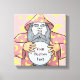 Alter Zauberer mit rosafarbenem Kap und Kristallzauberkugel. Verwenden Sie das Foto für Gesicht zum Anpassen. Eigener Text.
