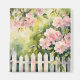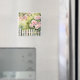 Rosa Blume wachsen um einen verwitterten, weißen Zaun auf diesem Magneten. Süß und romantisch, und sehr hübsch! Ideal für alle, die Blume und Gärtnern Lieben.