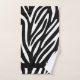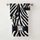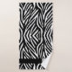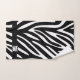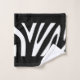 Poster de animal en zèbre en noir et blanc avec un petit dessin d'aquarelle d'un zèbre sur la serviette de la main et la serviette de bain. Le chiffon de lavage a des imprimés assortis et une bordure solide.