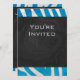 Zebra Blau und Weiß mit Monogramm Einladung