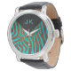 Zebra Brown und Aquamarin mit Monogramm Armbanduhr