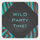 Zebra Brown und Aquamarin mit Monogramm Quadratischer Aufkleber
