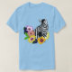 Ein Zebra mit afrikanischen Gänseblümchen vor blauem Hintergrund