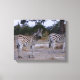 Double Take Zebras Nature Foto Drucke und Geschenke zeigen ein schönes Foto von zwei Zebras, die beide den Betrachter während einer Snack-Pause von Kurt Keller mit einer 35-mm-Kamera auf einer afrikanischen Safari in Botswana, Südafrika und Simbabwe. Jeder Zebra ist einzigartig trägt sein eigenes Muster der Streifen trotz der doppelten Einnahme. Wer afrikanische Tiere, Wildtiere und Zebrafreunde Liebe, wird dieses wunderschöne Foto von zwei Zebras schätzen, die in der Savanne stehend sind.
