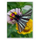 Ein wunderschöner Zebraschmetterling in meinem Blumengarten, der neben einem japanischen Käfer ein Zinnia genießt.